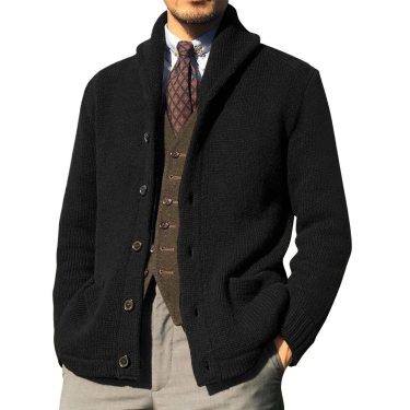 Designed with a classic shawl collar and straight-cut fit, this cardigan delivers a timeless look perfect for layering over shirts or tees.