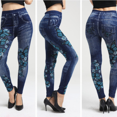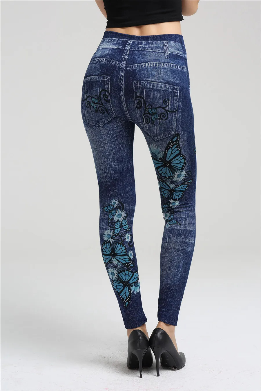 Stylish Leggings with Butterfly Print – Women’s Denim Look