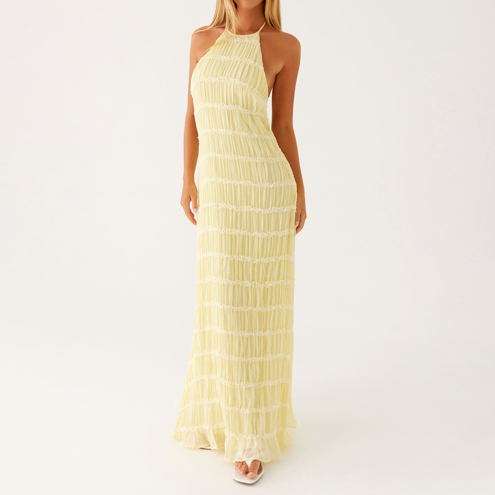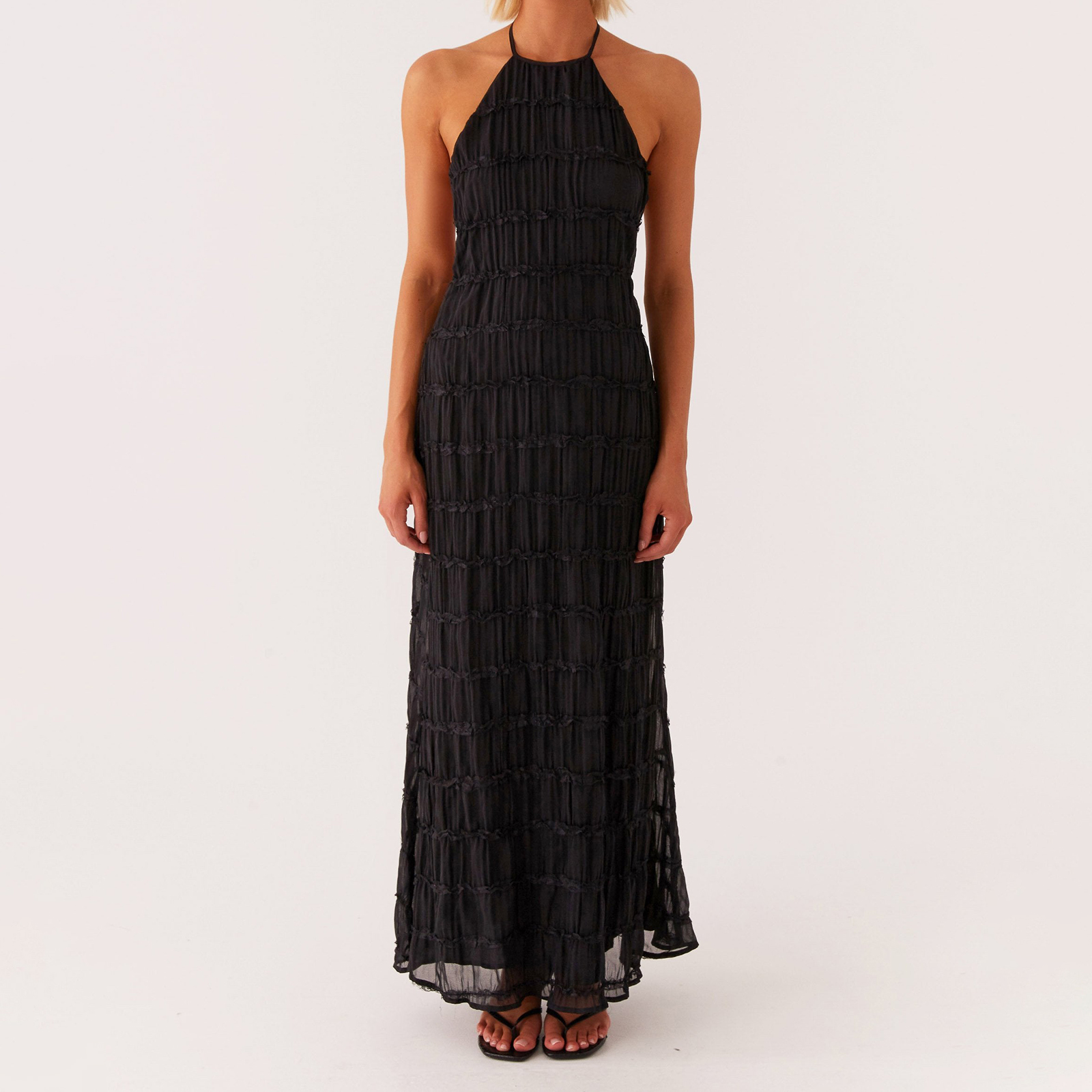 Sleeveless & Maxi Length: Smooth, sleeveless cut paired with a floor-skimming maxi length delivers both ease of wear and a timeless, elongated look.