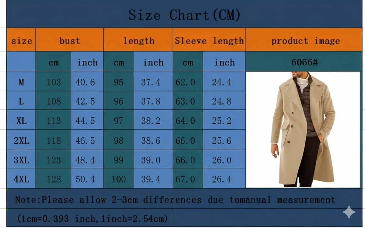 Stylish Thickened Trench Coat Men – Woolen Double Breasted Outerwear