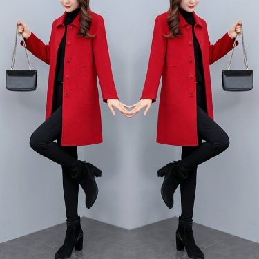 Crafted from a luxurious woolen fabric, this mid-length coat offers both warmth and sophistication, making it an essential addition to your wardrobe.