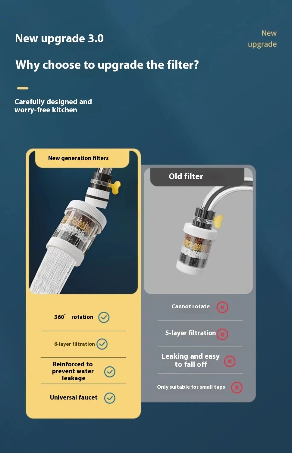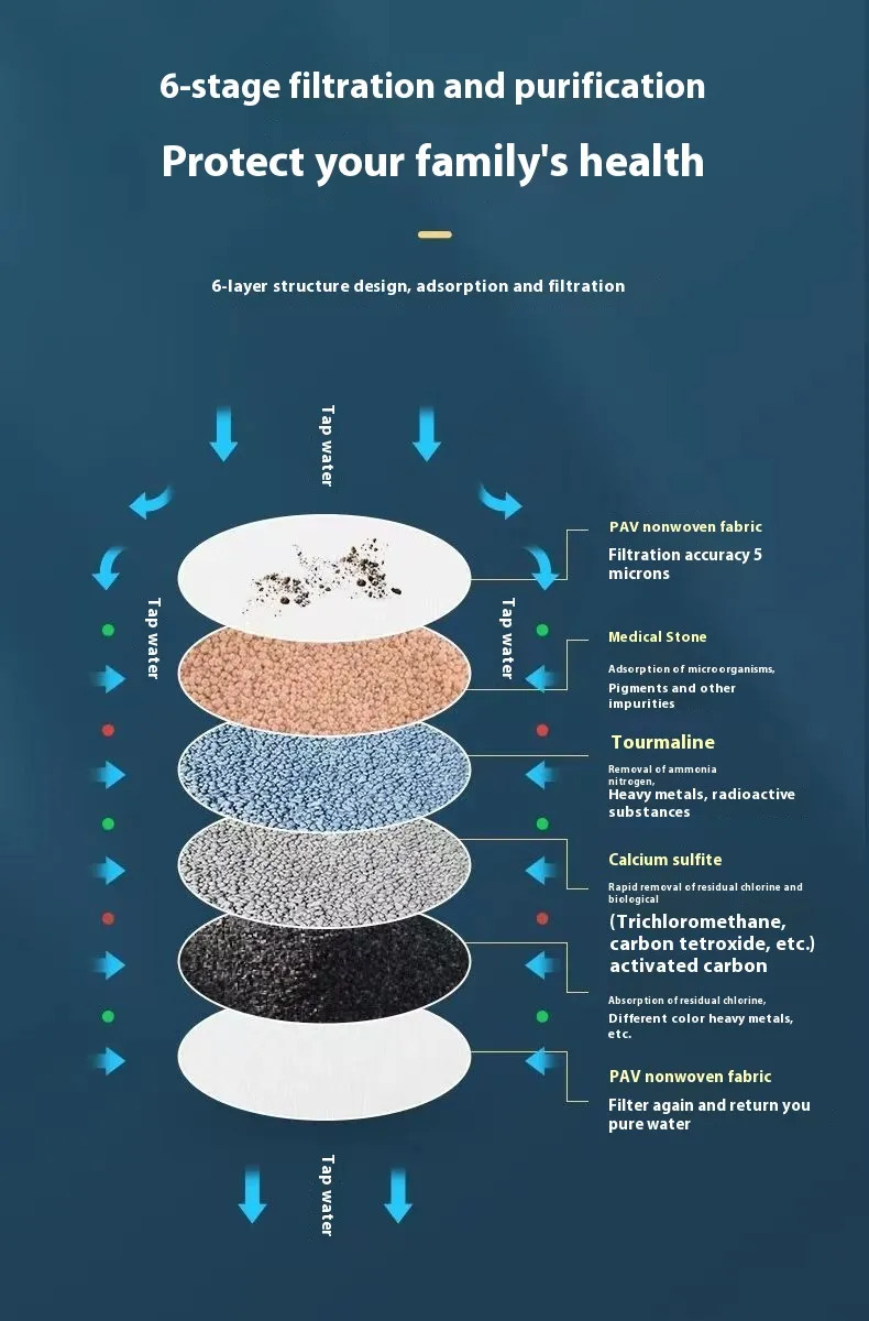 Equipped with six-layer filtration, this compact purifier effectively reduces impurities, odors, and sediment, making everyday tasks like drinking, cooking, and washing healthier and more enjoyable.