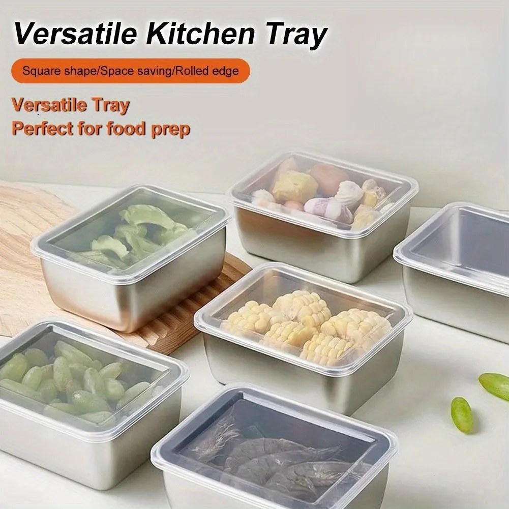 Upgrade your mealtime routine with our Thickened Stainless Steel Lunch Box Container — a premium rectangular food storage pan with a snug-fitting lid, crafted to last.
