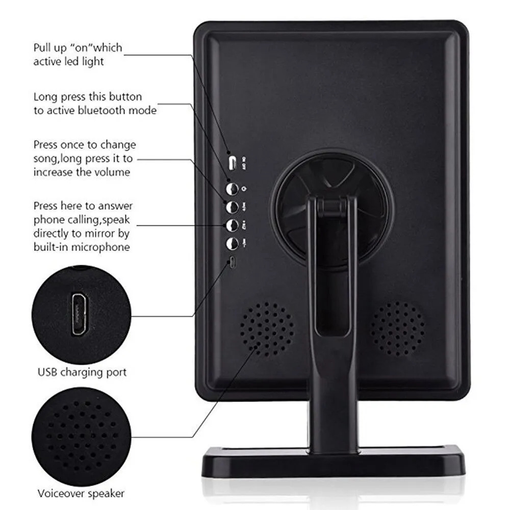 Three-in-One Function: Makeup mirror, LED lights, Bluetooth speaker