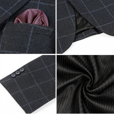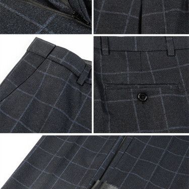 The stylish blue plaid pattern adds a fresh twist to classic businesswear, making this two piece wool suit for men easy to pair with dress shirts, loafers, or formal shoes for a versatile, professional look.