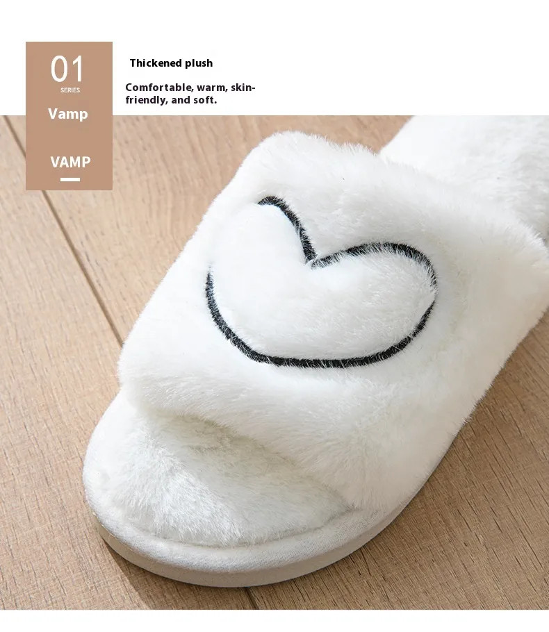 Wrap your feet in warmth and fun with these heart-patterned plush slippers—the perfect blend of comfort, style, and charm.