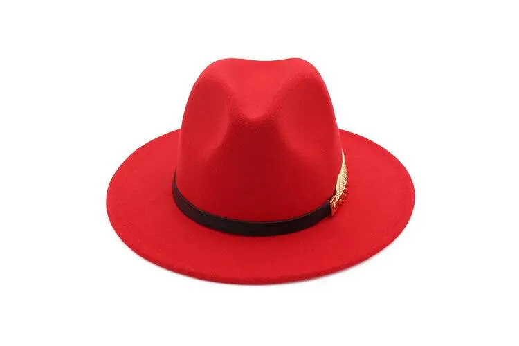 Featuring a classic silhouette with modern flair, the wool fedora hat includes striking metal leaf accents that add a unique and elegant touch.