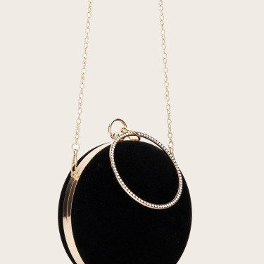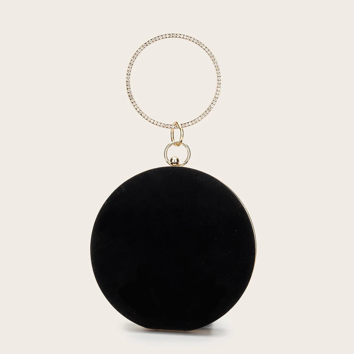 Rhinestone Handle & Chain Strap: Adorned with sparkling rhinestones and a sleek chain strap, the velvet round bag can be carried by hand or worn over the shoulder for versatility.