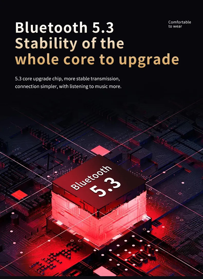 Powered by advanced Bluetooth 5.3 technology, the wireless bluetooth earbuds deliver faster pairing, more stable connections, and smoother audio transmission.