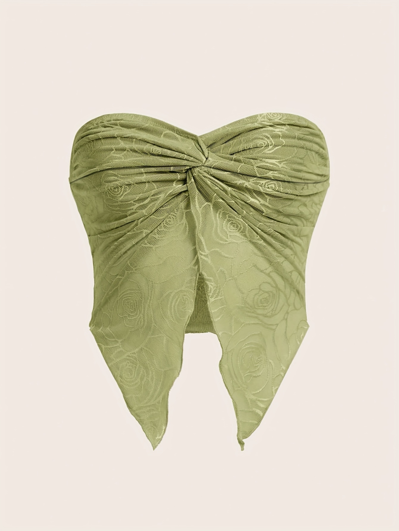 Twist Front Detail: Creates a flattering neckline and adds visual interest to the classic bandeau style.