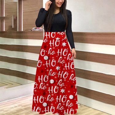 Seasonal & Stylish: Festive print maxi dress embodying the joyful Christmas spirit