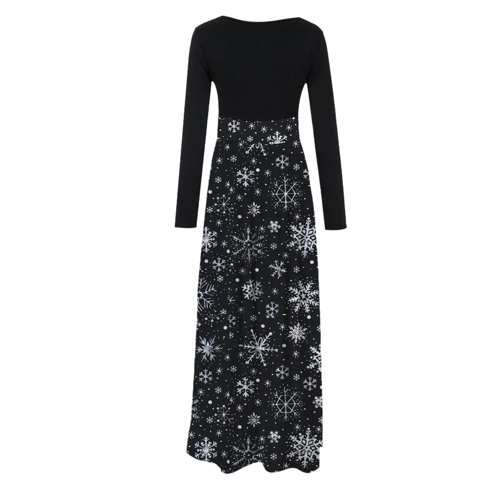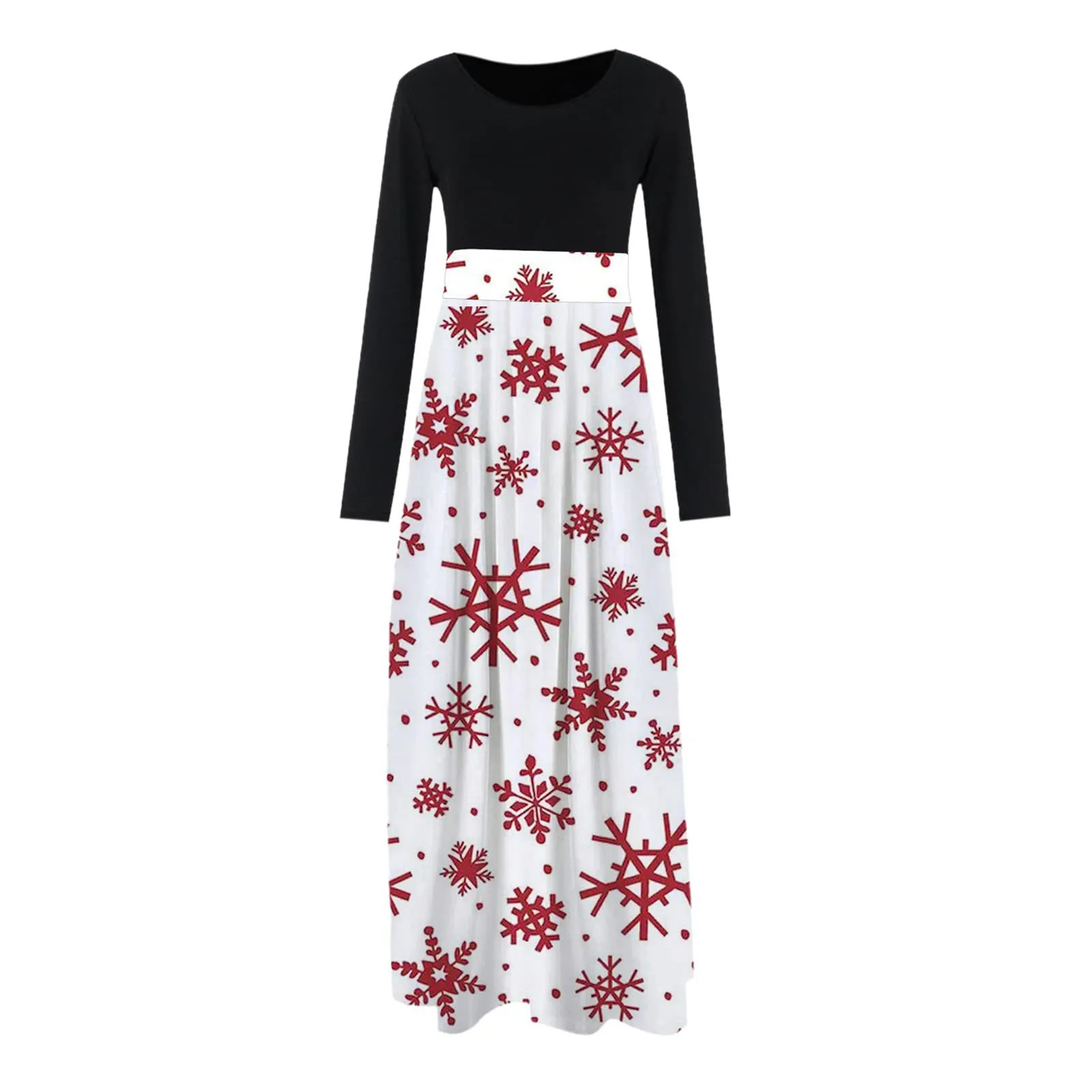 Featuring a long flowy silhouette and vibrant holiday prints, this dress blends comfort, style, and seasonal spirit—perfect for Christmas parties, family gatherings, winter events, and cozy festive photos.