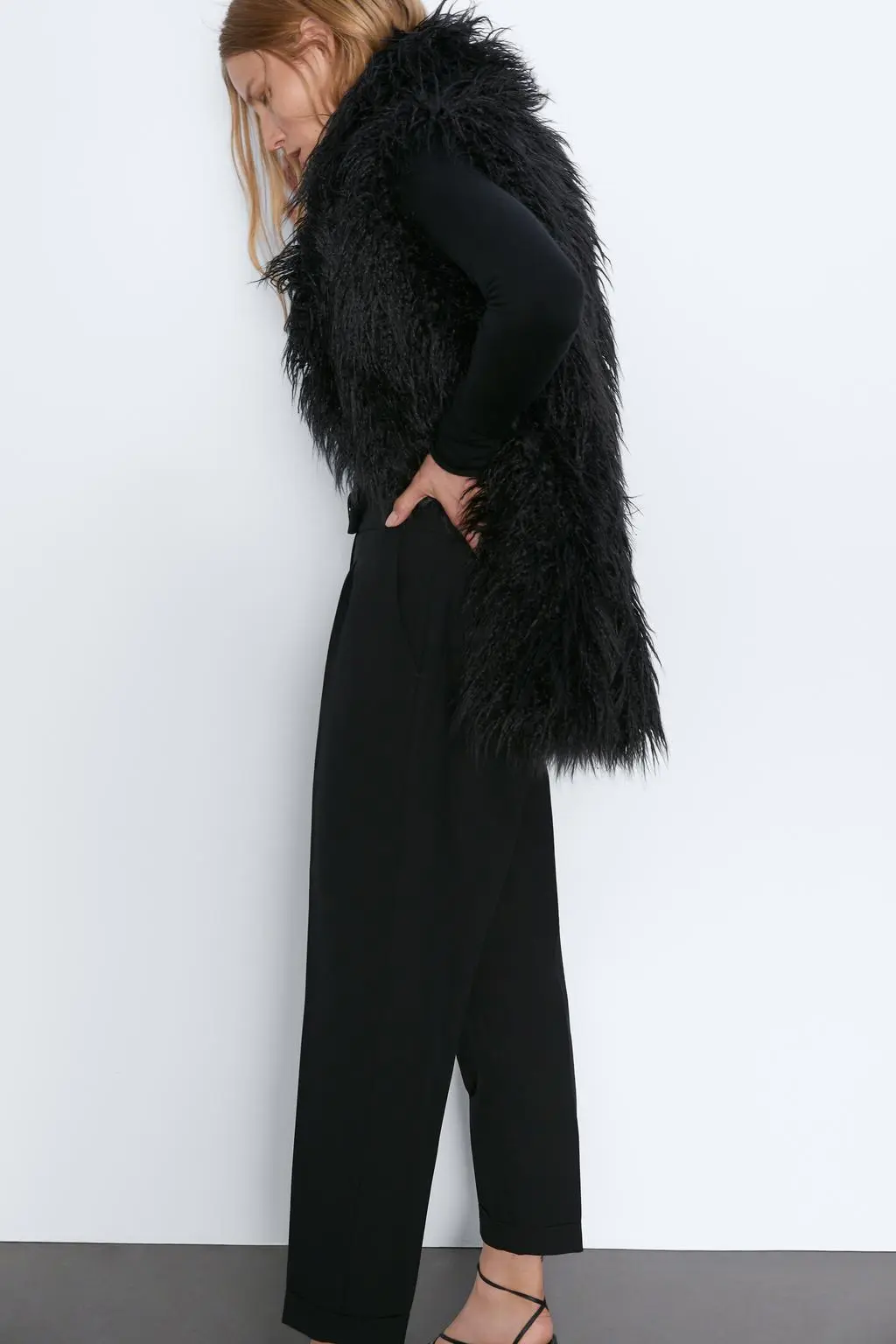 Add a touch of cozy elegance to your wardrobe with this stylish faux fur vest, designed to keep you warm while elevating your everyday outfits.