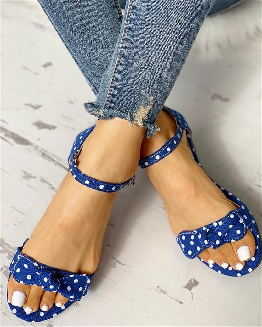 The Women’s Flat Polka Dot Bow Sandals feature a cute polka-dot pattern paired with an oversized bow that adds the perfect touch of femininity and fun.