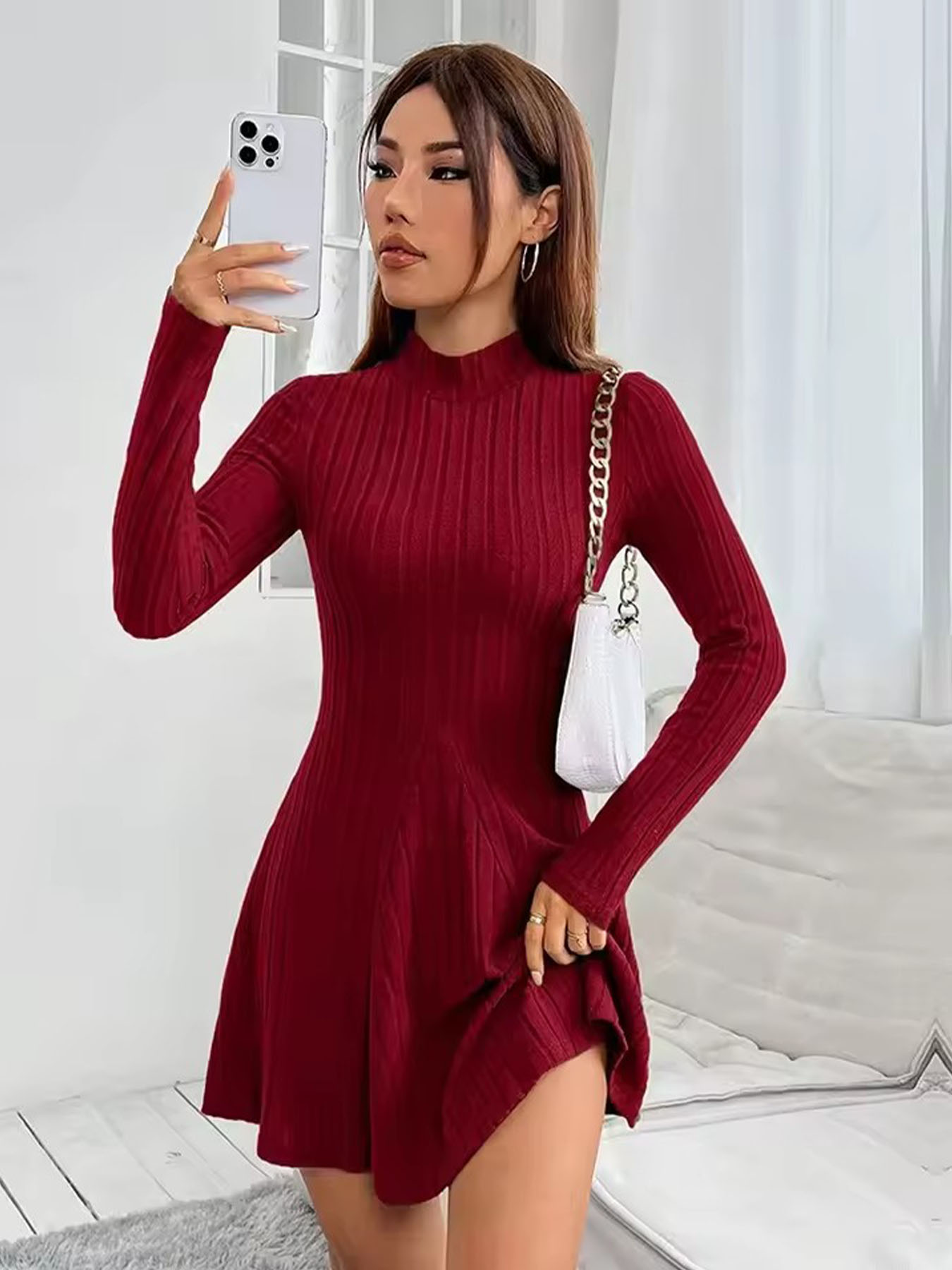 Elevate your autumn and winter wardrobe with the women’s half high collar cinched dress a sleek, slim-fit A-line silhouette that combines elegance with comfort.