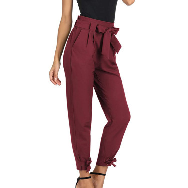A self-tie bow belt at the waist adds a feminine accent while allowing you to adjust the fit, and charming bow-knot details at the ankles bring a unique, stylish touch.