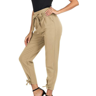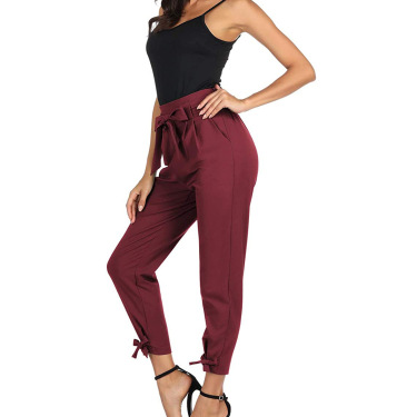 A self-tie bow belt at the waist adds a feminine accent while allowing you to adjust the fit, and charming bow-knot details at the ankles bring a unique, stylish touch.