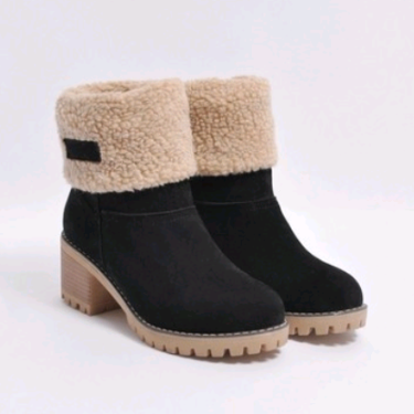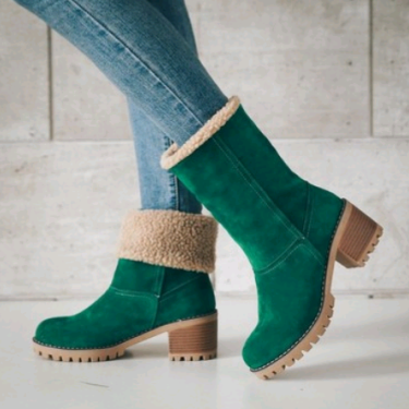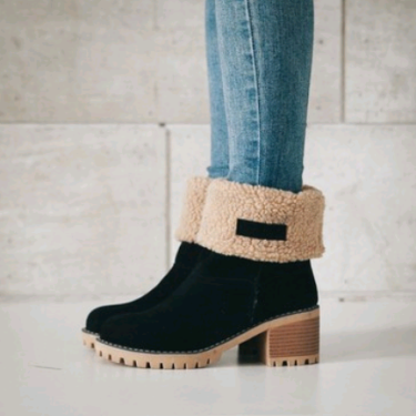 Styled as classic mid-calf Martin boots with a simple solid pattern, these suede winter boots with fur are easy to pair with jeans, leggings, or winter dresses.