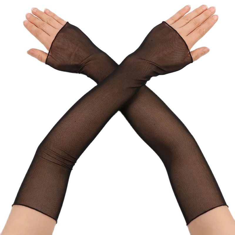 Step into lightweight, breezy elegance with our long mesh fingerless gloves, featuring delicate ruffle trim and made from breathable fabric—perfect for summer and stylish occasions.