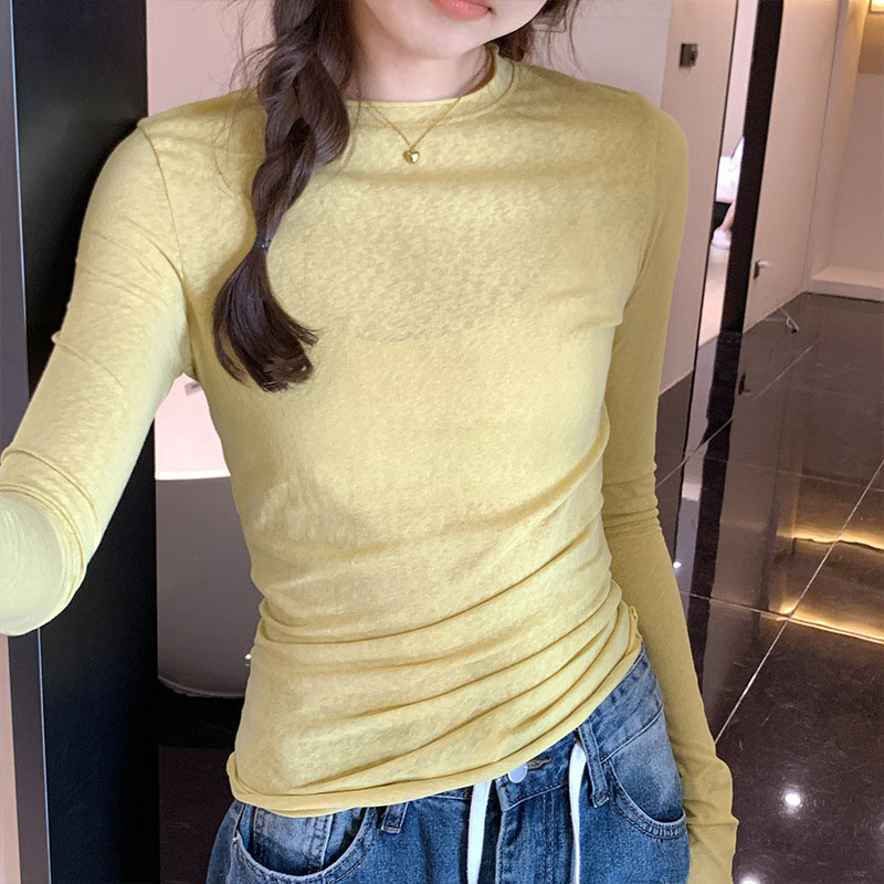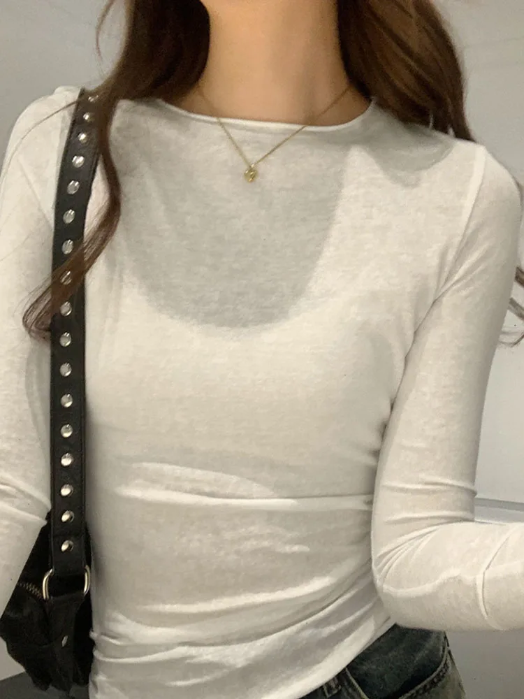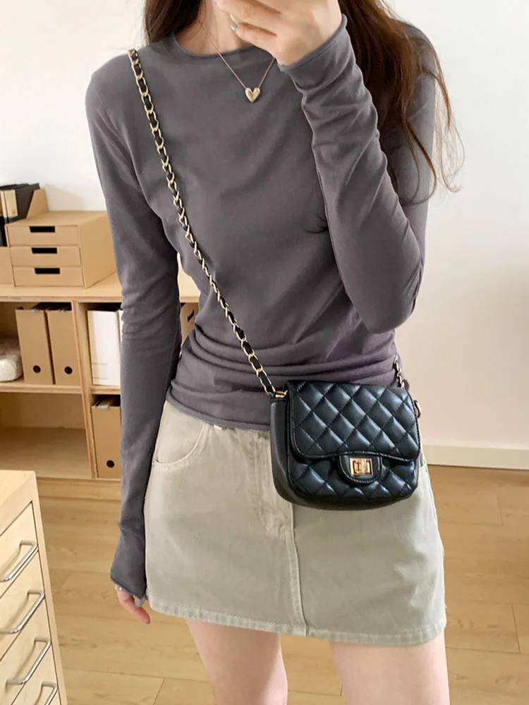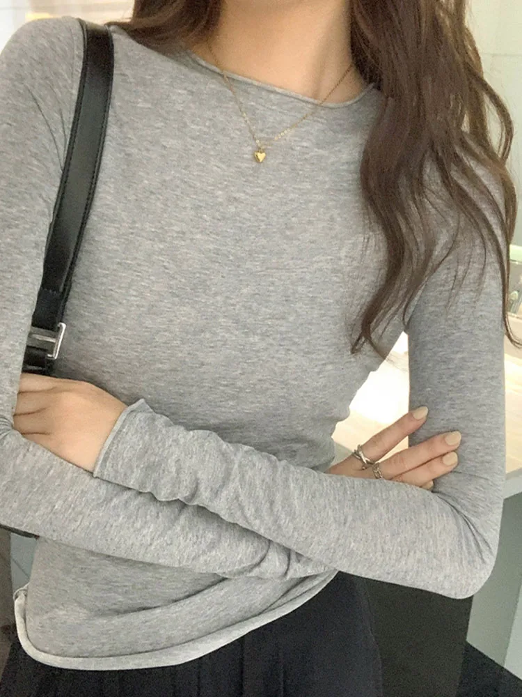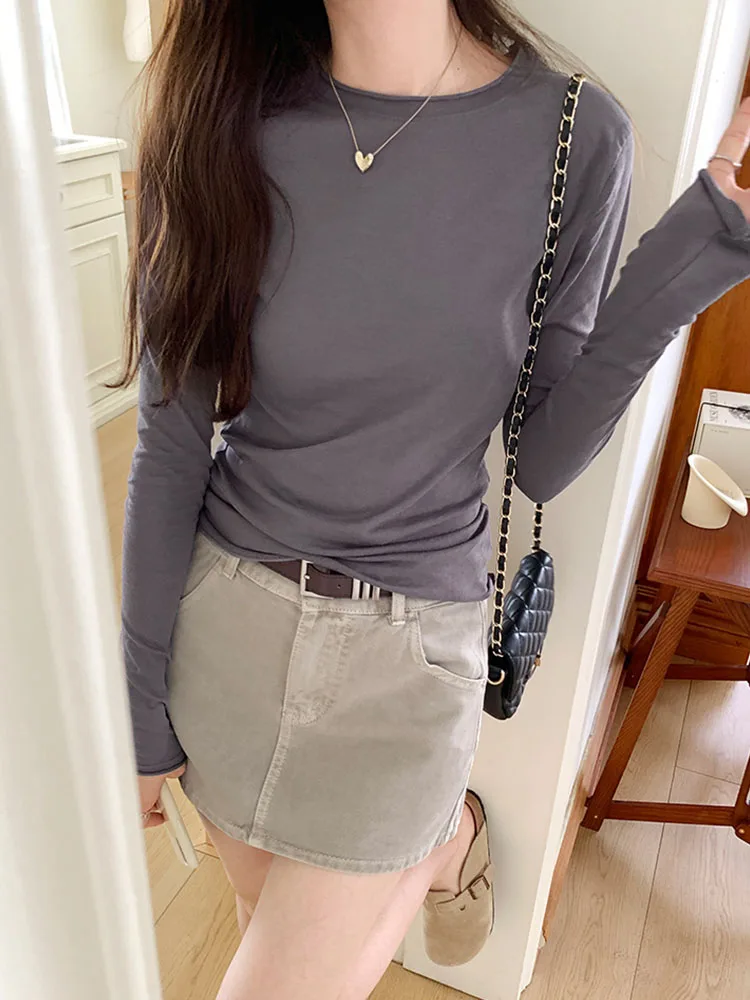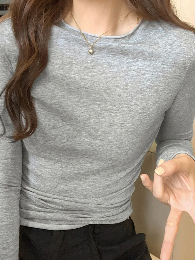 Women’s Slim Fit Top – Solid Long Sleeve O-Neck Casual Style
