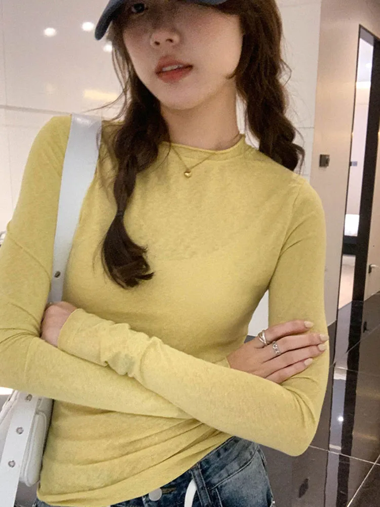 Designed with a classic O-neck collar and full-length sleeves, it features a minimalist solid color pattern, making it perfect for layering or wearing solo.