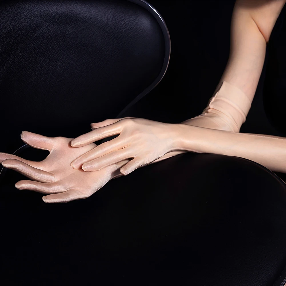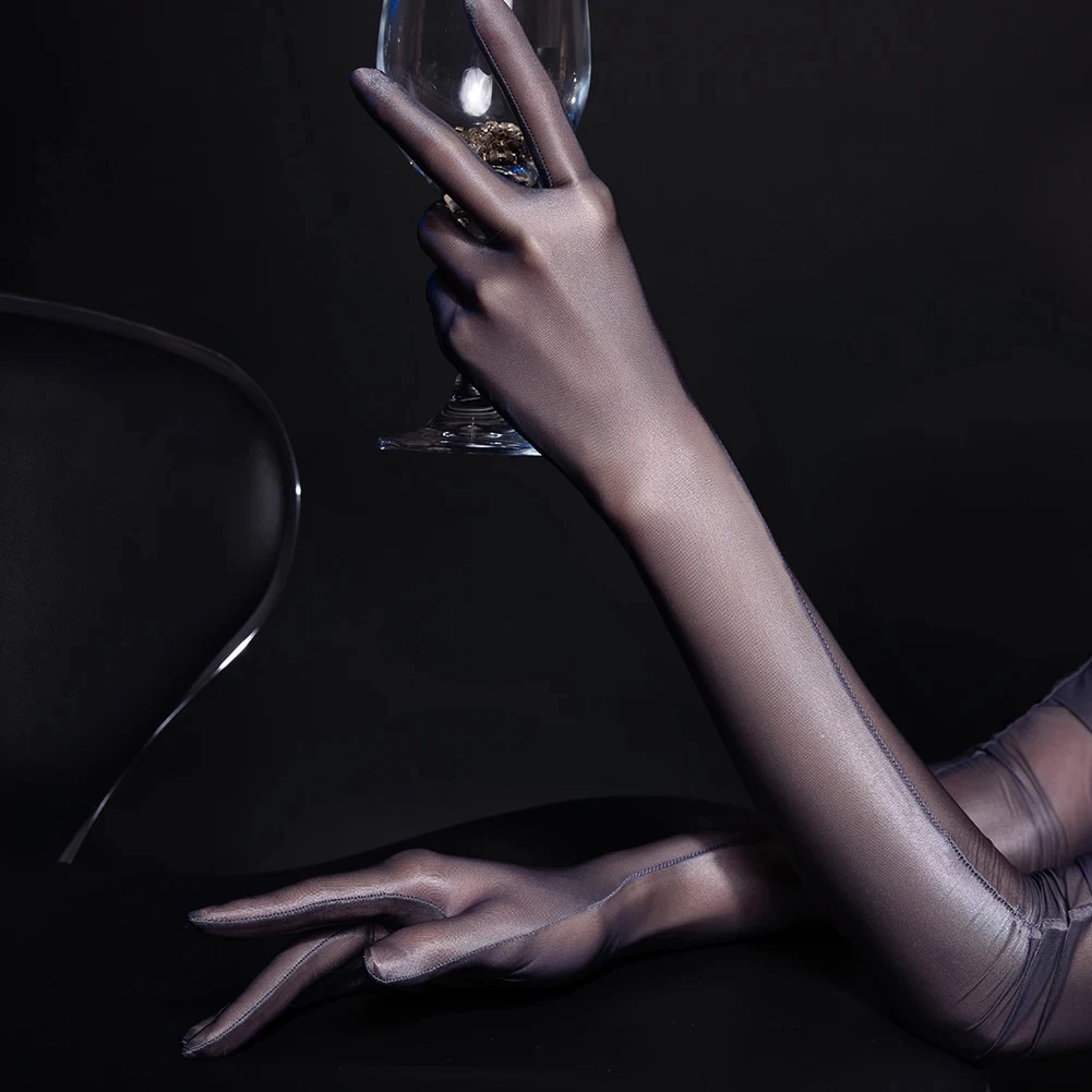 Glossy Sheer Finish: Crafted from a blend of polyester and spandex, these gloves offer a sleek, shiny appearance that catches the light beautifully.