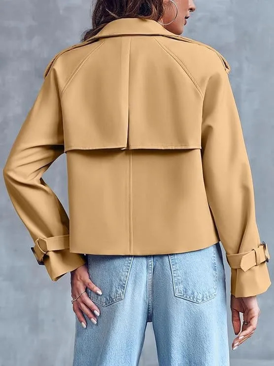 Upgrade your outerwear collection with this trench jacket women – fashionable short double-breasted style, the go-to piece for classy, confident looks every day.