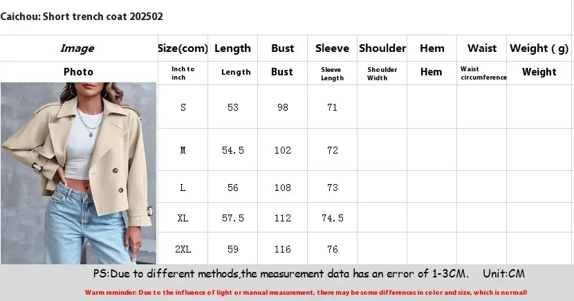 Chic and Modern Fit: With its regular version and normal 50cm length, this short trench jacket offers a flattering silhouette that pairs beautifully with jeans, skirts, or dresses.
