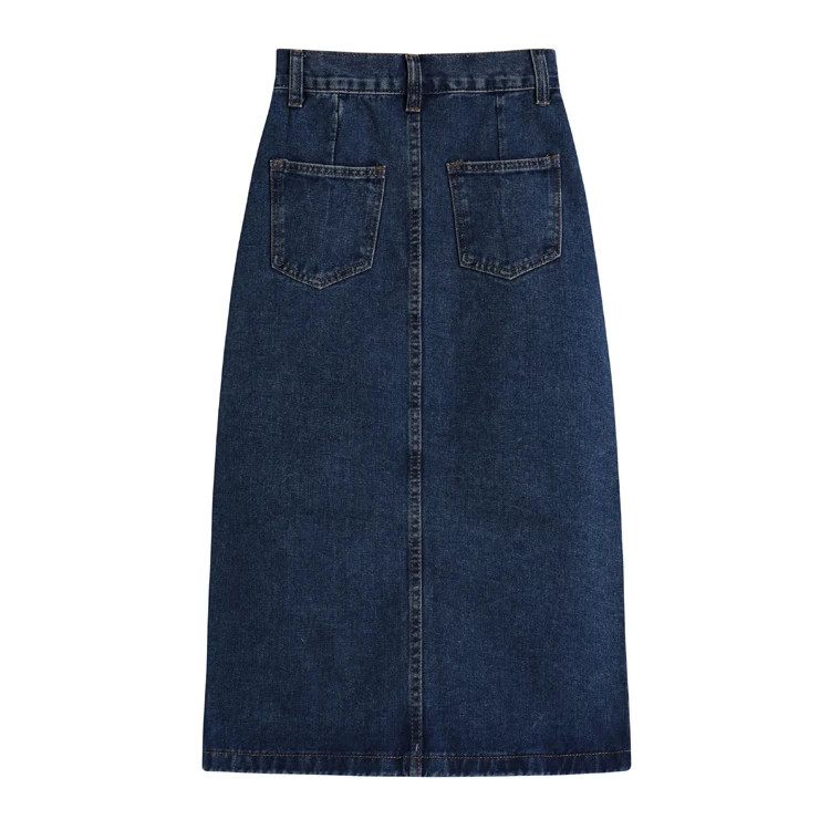 Featuring a high-waist, slim-fit silhouette and a stylish asymmetric side slit, this mid-calf denim skirt brings a modern edge to any occasion.